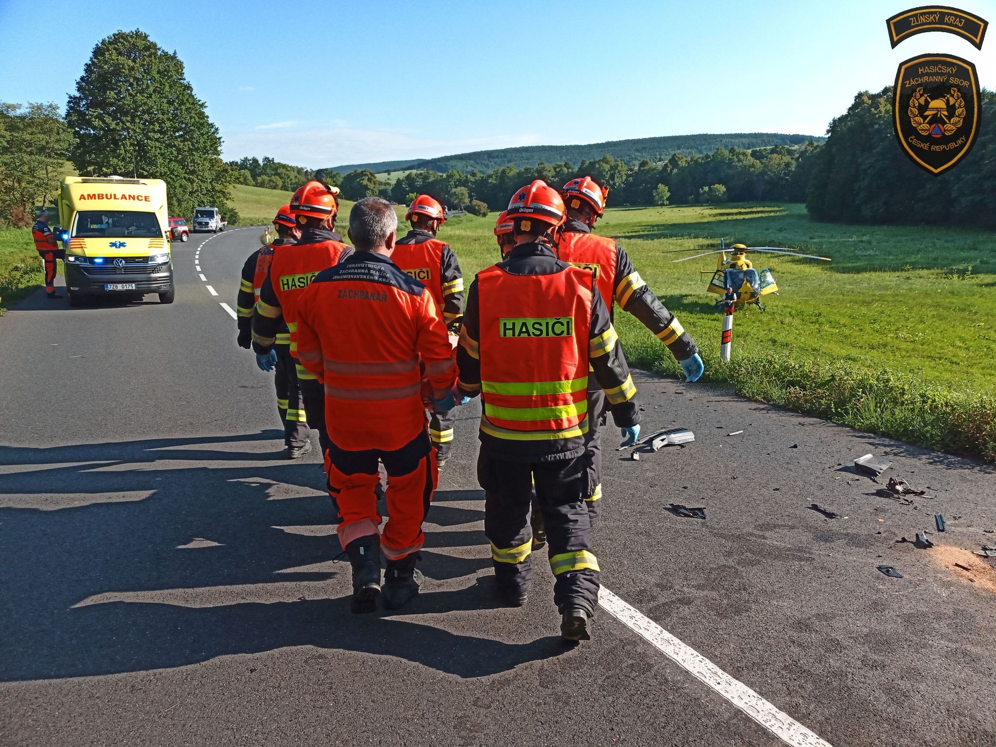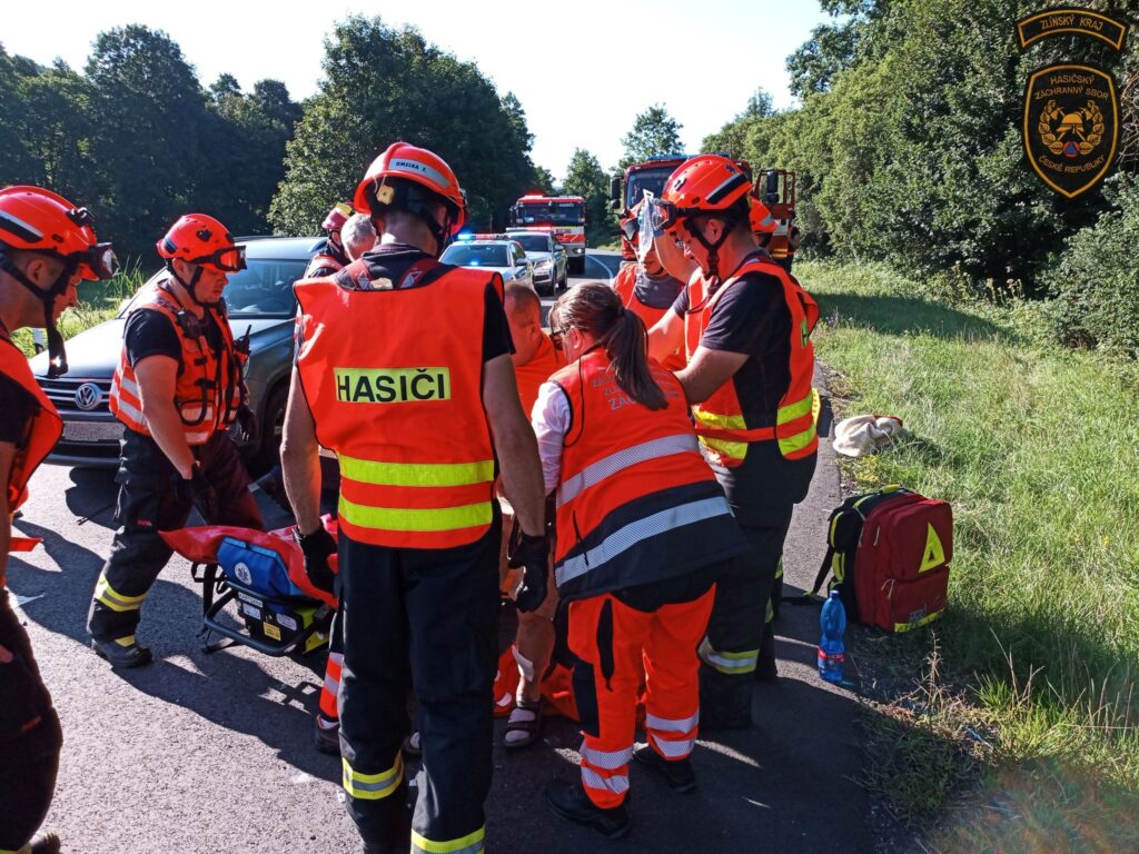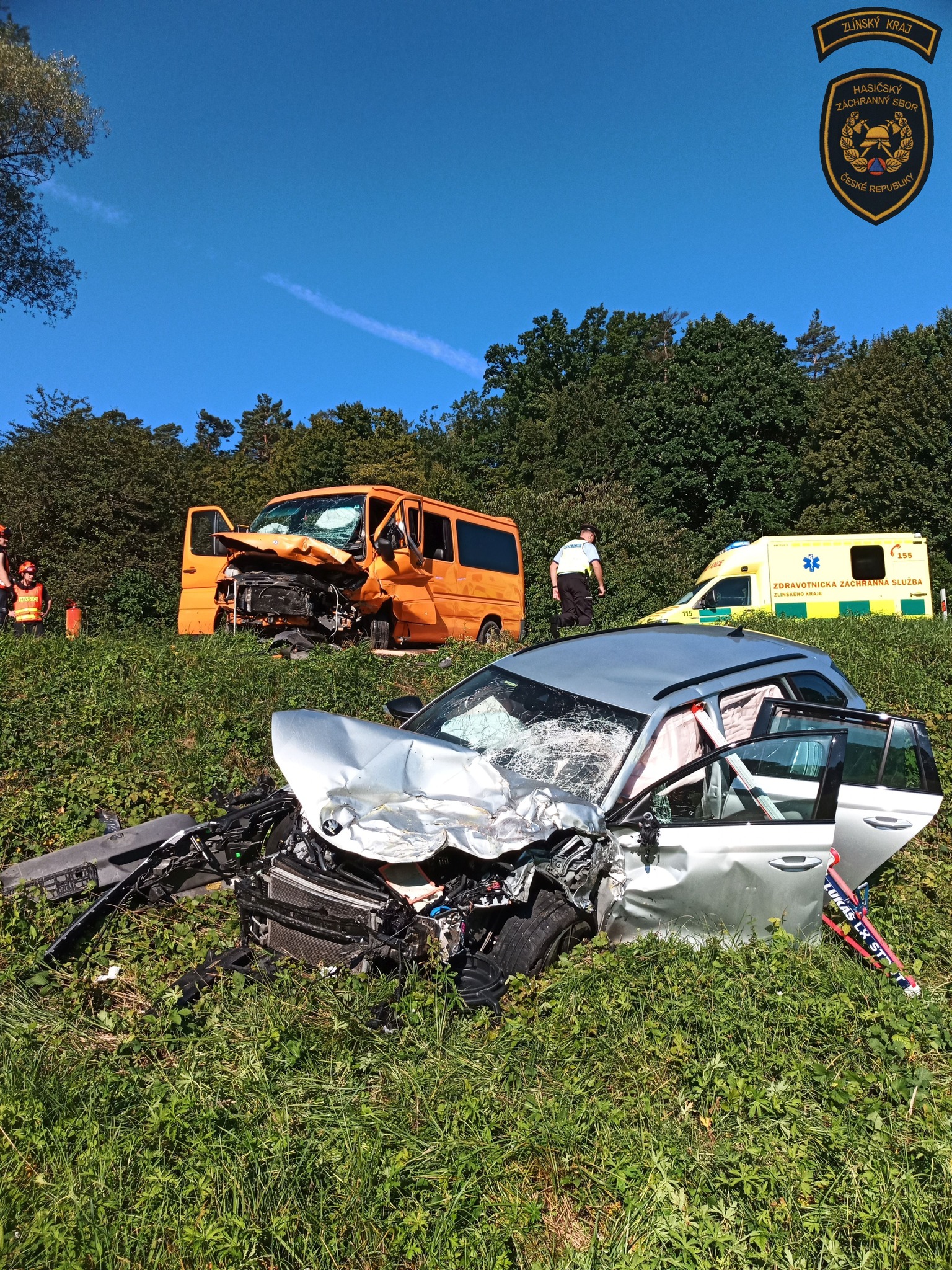 Na místo nehody byli vysláni profesionální hasiči ze stanic Luhačovice a Uherský Brod. Ti po příjezdu zjistili, že při nehodě bylo zraněno více osob, všichni byli již mimo vozidla a nebylo nutné nikoho vyprošťovat. V osobním vozidle jel řidič, který utrpěl zranění. V dodávce jelo celkem osm lidí a sedm z nich bylo zraněno. Hasiči okamžitě začali s ošetřováním zraněných a poté asistovali posádkám zdravotnické záchranné služby. Na místo byl povolán i vrtulník. Hasiči jej naváděli při přistání. Poté do něj transportovali jednu zraněnou osobu. Další zranění byli transportováni do sanitních vozů.