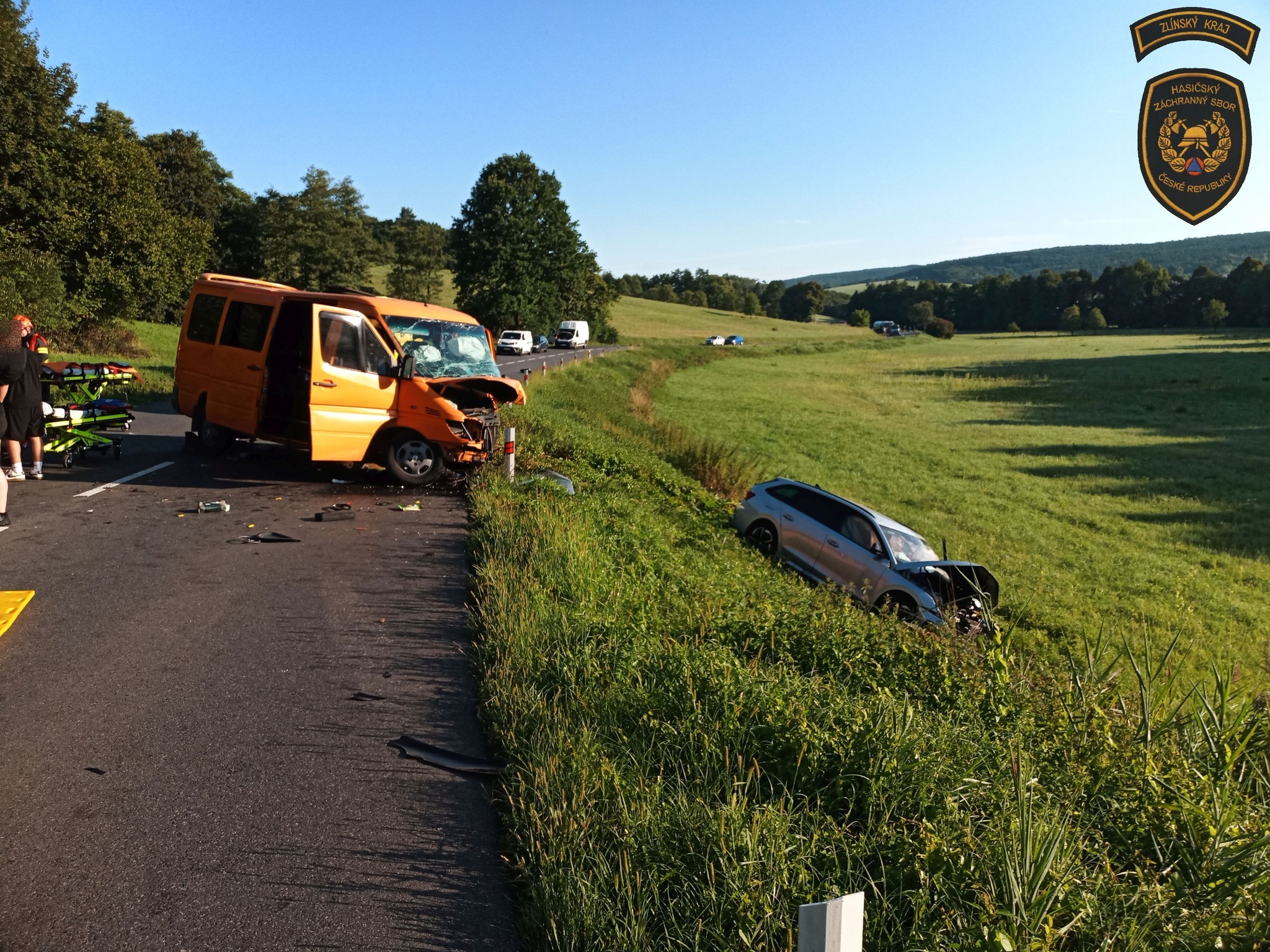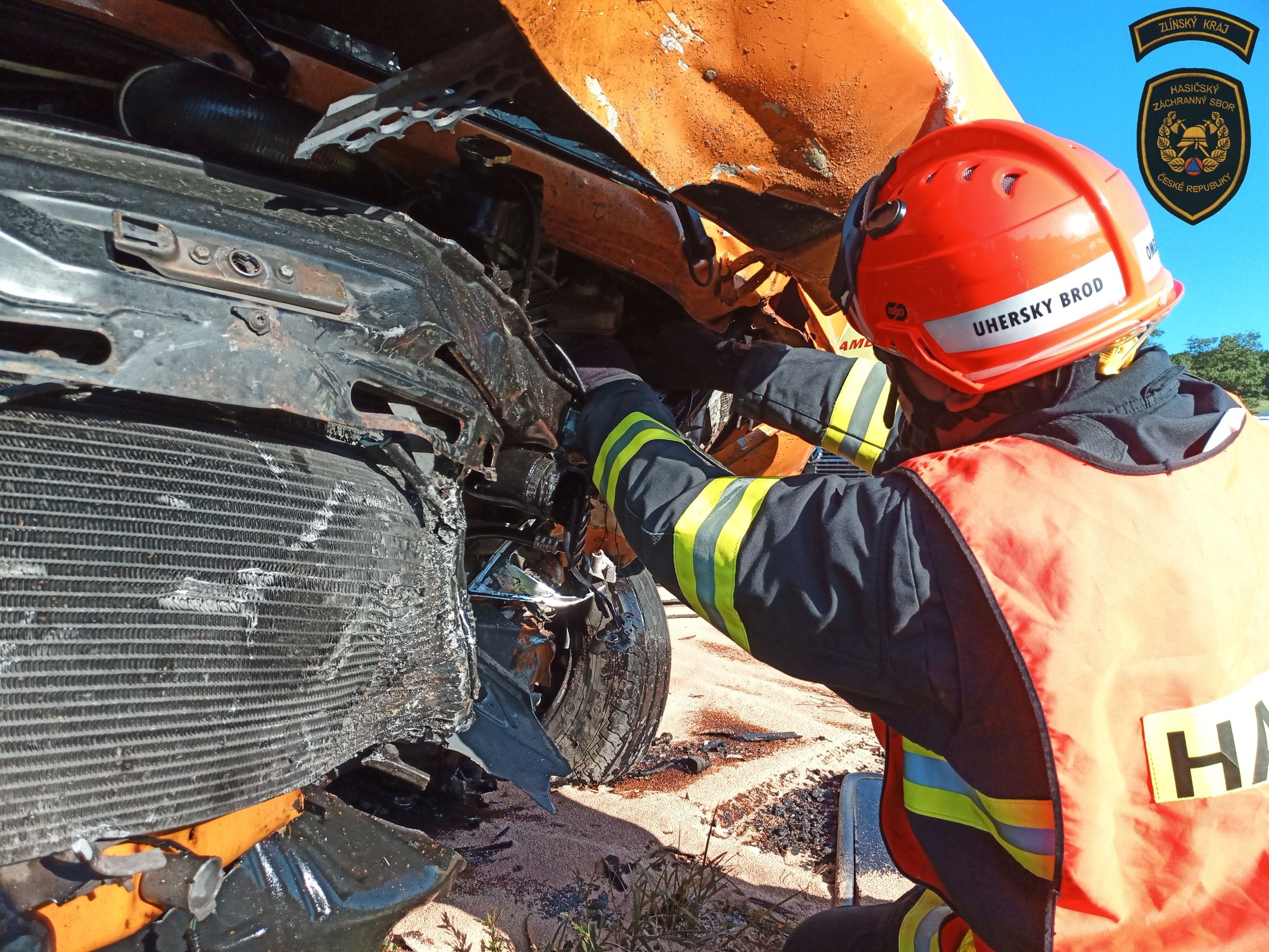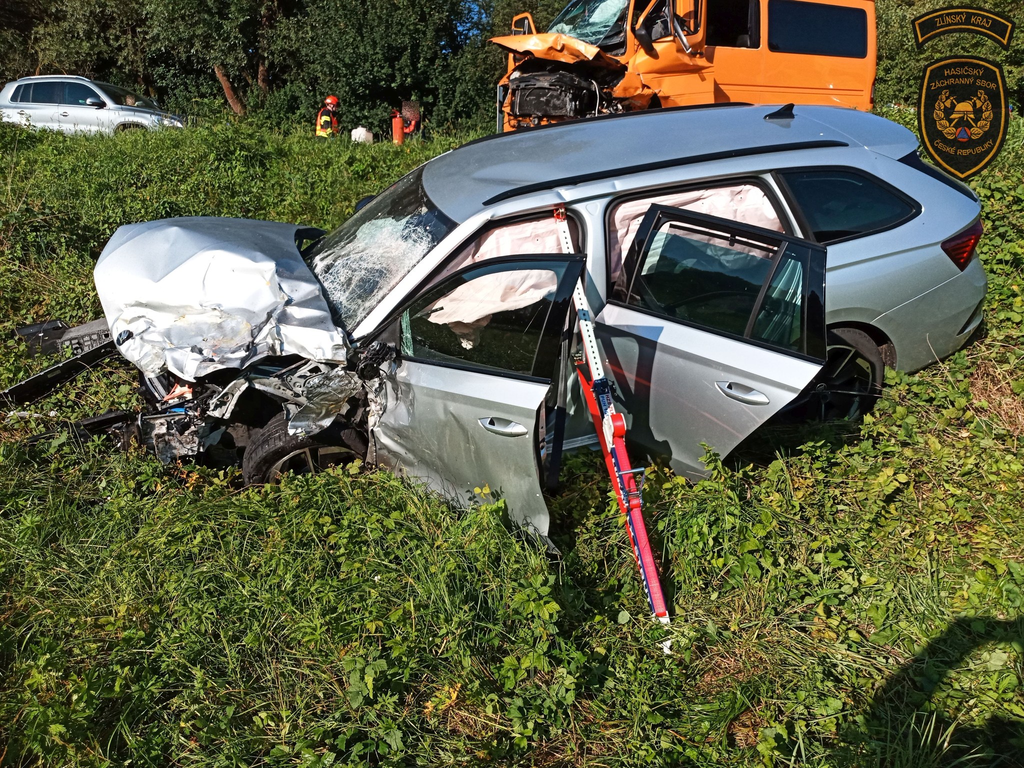 Na místo nehody byli vysláni profesionální hasiči ze stanic Luhačovice a Uherský Brod. Ti po příjezdu zjistili, že při nehodě bylo zraněno více osob, všichni byli již mimo vozidla a nebylo nutné nikoho vyprošťovat. V osobním vozidle jel řidič, který utrpěl zranění. V dodávce jelo celkem osm lidí a sedm z nich bylo zraněno. Hasiči okamžitě začali s ošetřováním zraněných a poté asistovali posádkám zdravotnické záchranné služby. Na místo byl povolán i vrtulník. Hasiči jej naváděli při přistání. Poté do něj transportovali jednu zraněnou osobu. Další zranění byli transportováni do sanitních vozů.