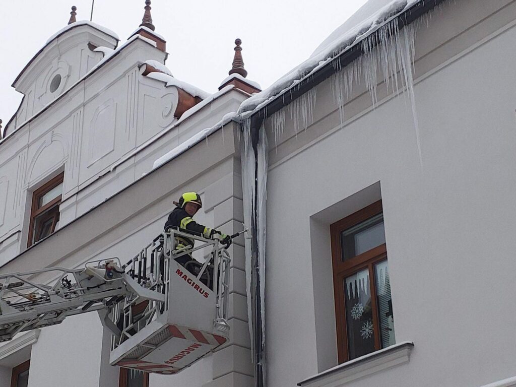 Mráz a střídání teplot přináší nejen zimní atmosféru, ale i riziko pádu rampouchů a sněhových převisů ze střech.