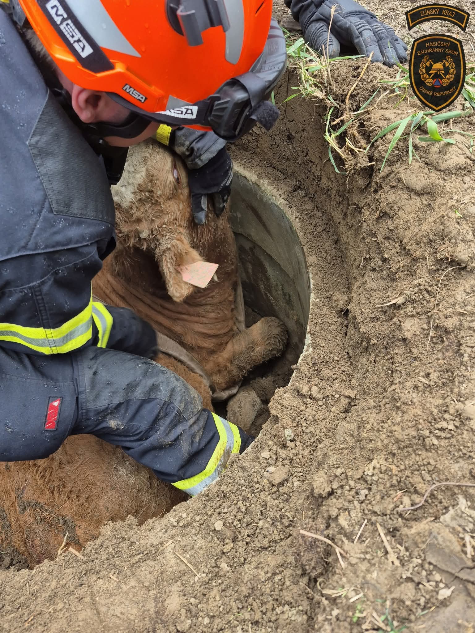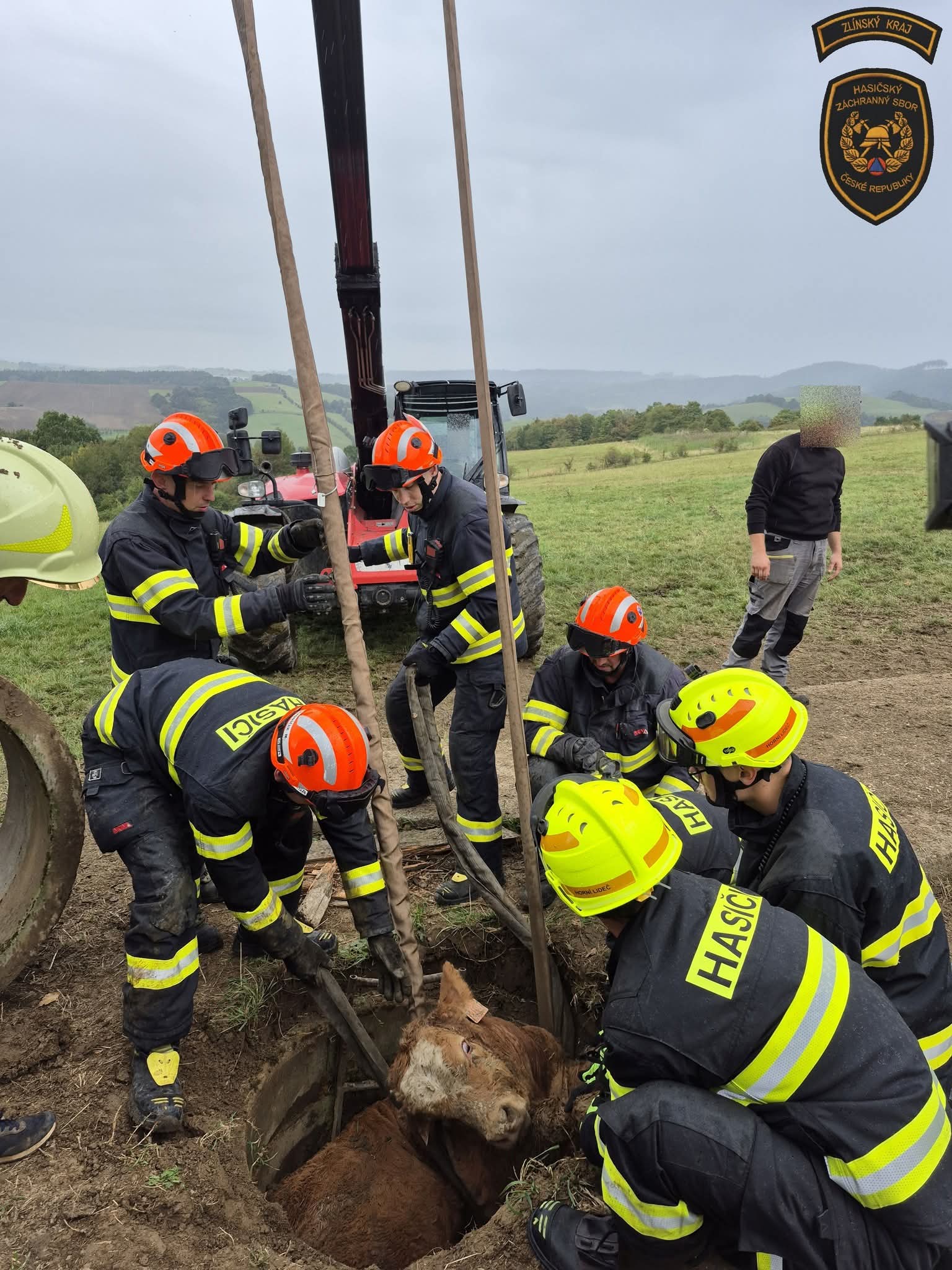 Krajské operační středisko hasičů přijalo dnes po třetí hodině odpolední oznámení o býkovi, nacházejícím se ve skruži v Lidečku na Vsetínsku. Na místo byli vysláni profesionální hasiči z Valašských Klobouk a dobrovolné jednotky z Horního Lidče a Lidečka, které čekala nelehká práce.