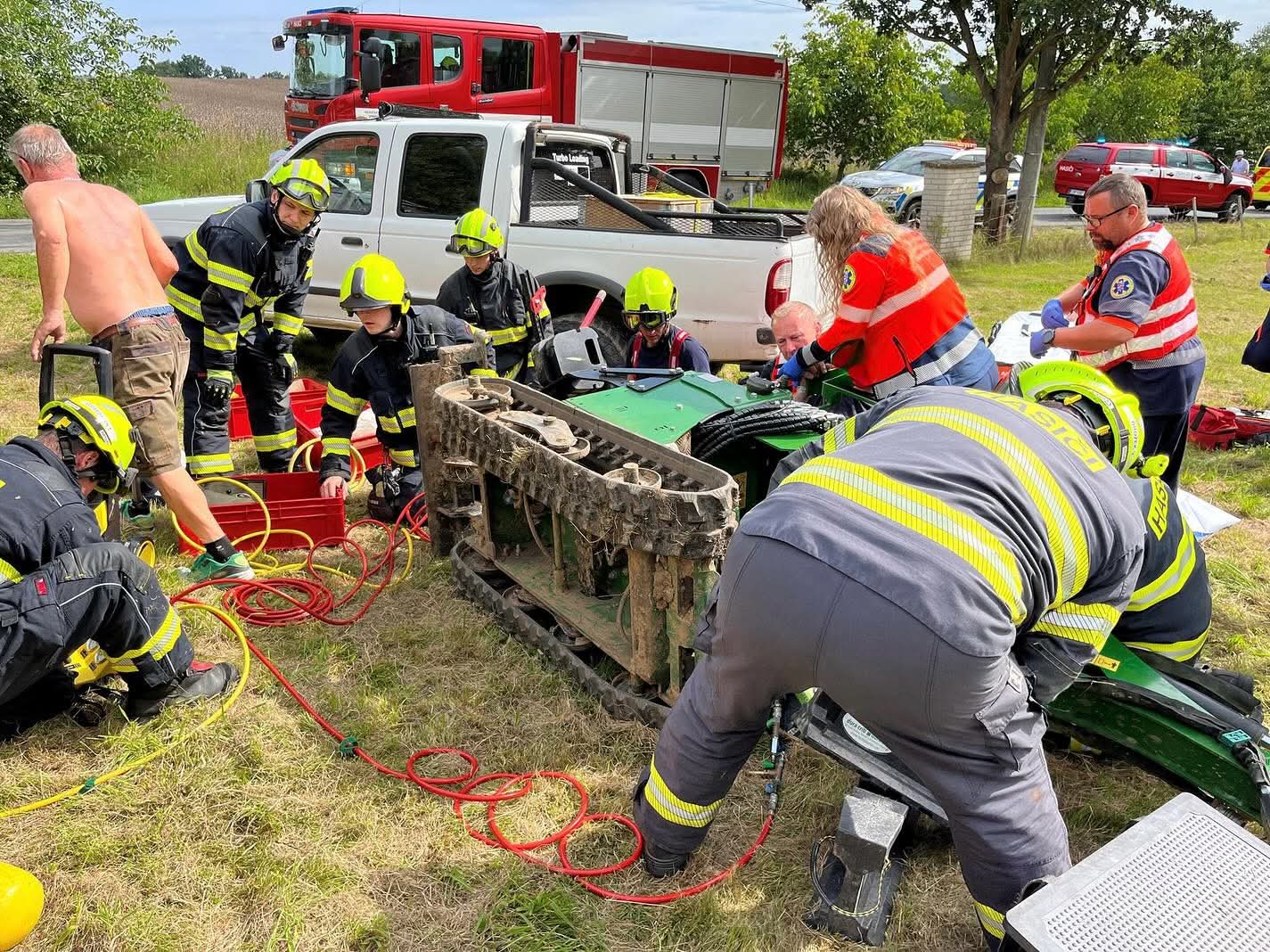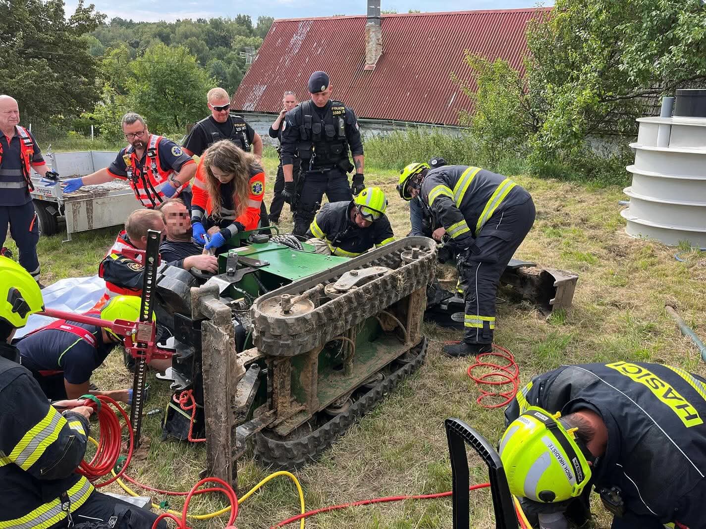 Zaklíněná osoba pod minibagrem zaměstnala 4 jednotky hasičů. Při příjezdu jednotek na místo byly použity vysokotlaké vaky, pomocí kterých byl bagr nadzvednut a osoba vyproštěna. Následně byla předána do péče @zzs_sk. 🚜