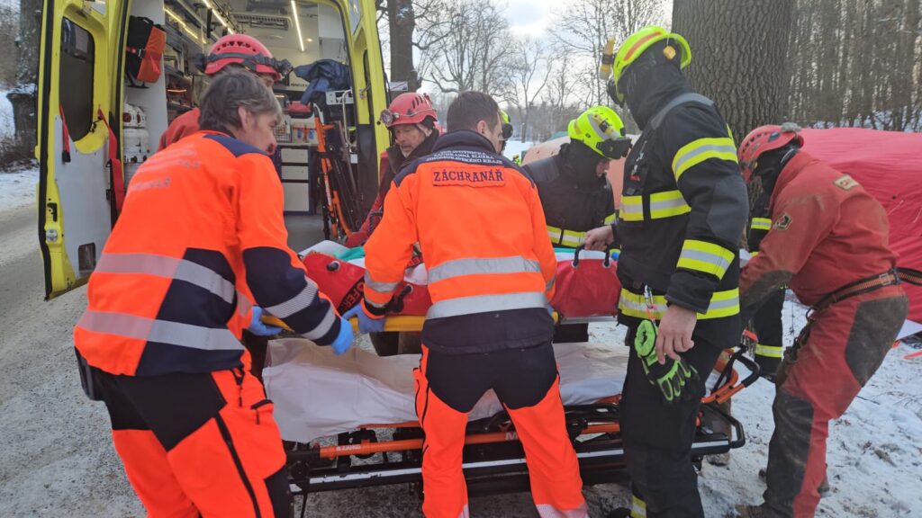 - Zásah hasičů v Moravském krasu, který trval přes 20 hodin, jsme sledovali od samého začátku a byli v kontaktu s velitelem. Po celou dobu jsme byli připraveni vyrazit na místo, pokud by to bylo potřeba. Dnes ráno se podařilo dostat muže z jeskyně na povrch, kam jsme vyslali nejbližší posádku. Zdravotníci ho vyšetřili, zajistili mu tepelný komfort, zafixovali poraněnou nohu a poté ho převezli na urgentní příjem Fakultní nemocnice Brno k další péči, zdroj ZZS Jihomoravského kraje