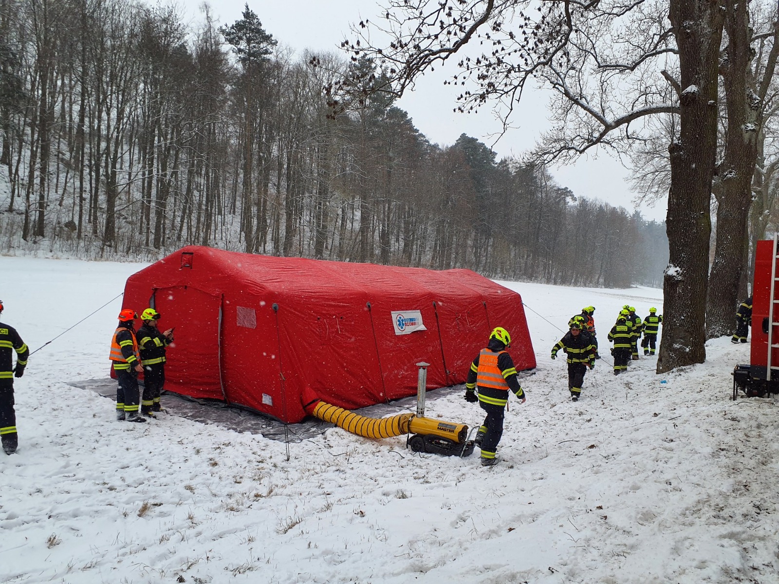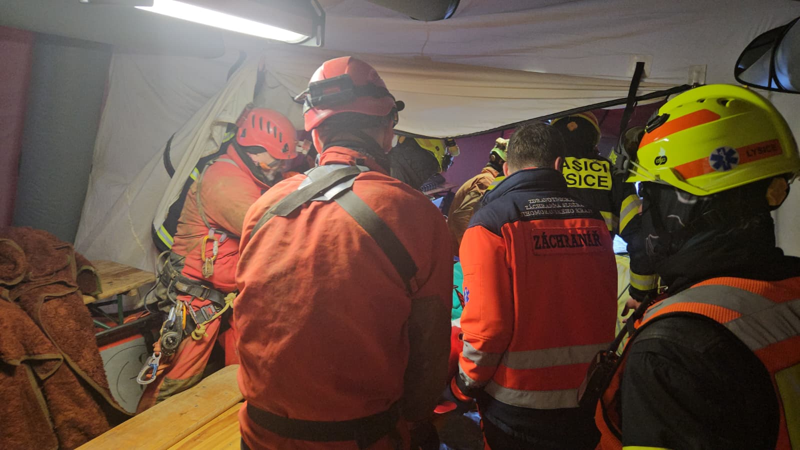 - Záchranná akce právě začínala. Na místo přistál policejní vrtulník s našimi leteckými hasiči-záchranáři, dorazily i dobrovolné jednotky určené pro činnosti v oblasti ochrany obyvatelstva, které připravují zázemí pro zasahující. Povolali jsme naše střelmistry a spolupracujeme se speleologickými záchranáři. Připravujeme také vyhřívané stany..