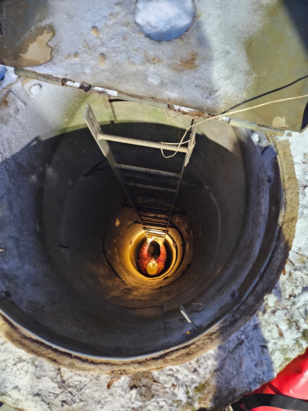 - Je 16:30. Probíhá uvolňování cesty pro transport pacienta. V jeskyni stavíme další ohřívací stanoviště se stanem pro pohodlí zraněného. Doktor ze speleozáchranky je na místě v přímém kontaktu. Pro komunikaci se skupinou v podzemí využíváme systém Nikola.